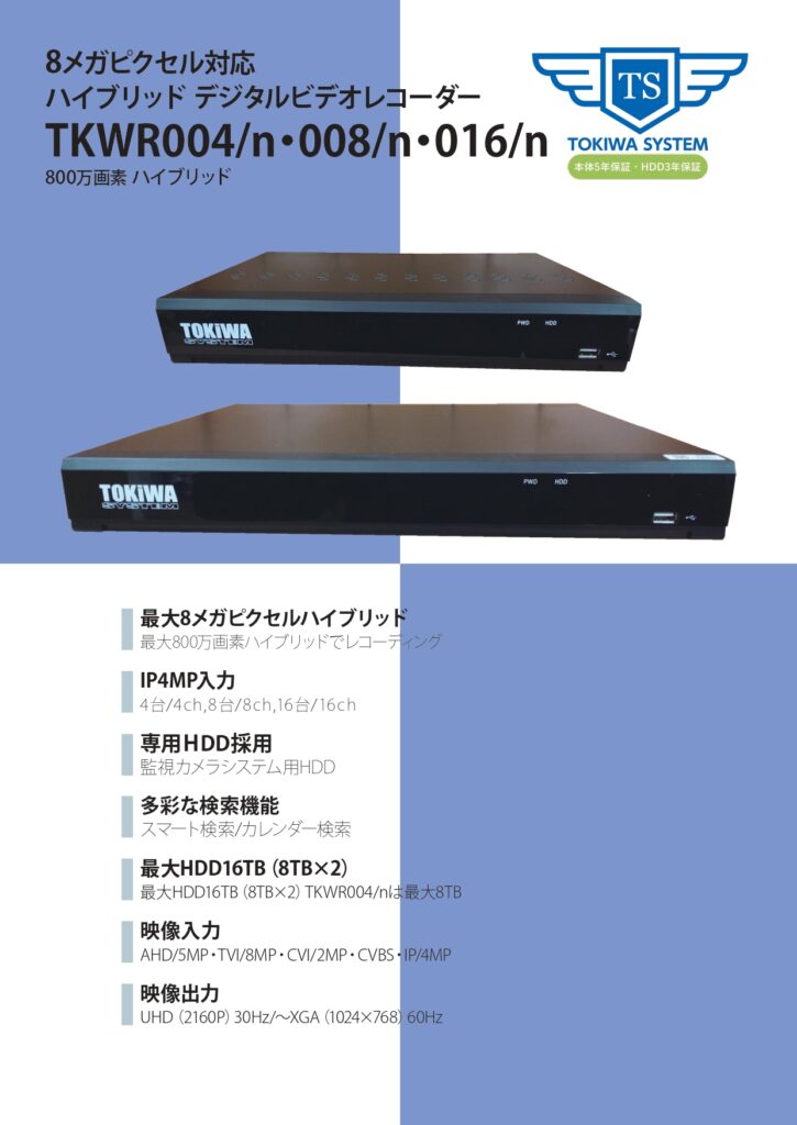 - 映像入力 AHD/5MP・TVI/8MP・CVI/2MP・CVBS・IP/4MP